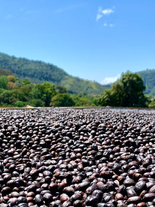 And then in the processing, they do a spot on job of sorting out under ripe cherry and over ripe cherry and really selecting and processing the cherry that’s perfectly right. What sets this natural apart is that they pre-dry on raised beds, then use the magical dark room dehydrators, and if the harvest is a big one, they finish the natural process in mechanical dryers.