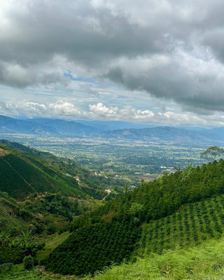 This blend of Pink Bourbon and Bourbon Aji comes from Jose Cuellar - a rare coffee producer in Huila, Colombia. He’s been in coffee for a very long time, but his latest venture has taken him out of the normal path of Colombian coffee production. He has planted eight different coffee varieties and has been working through many super cool processing experiments. Read the full story below.