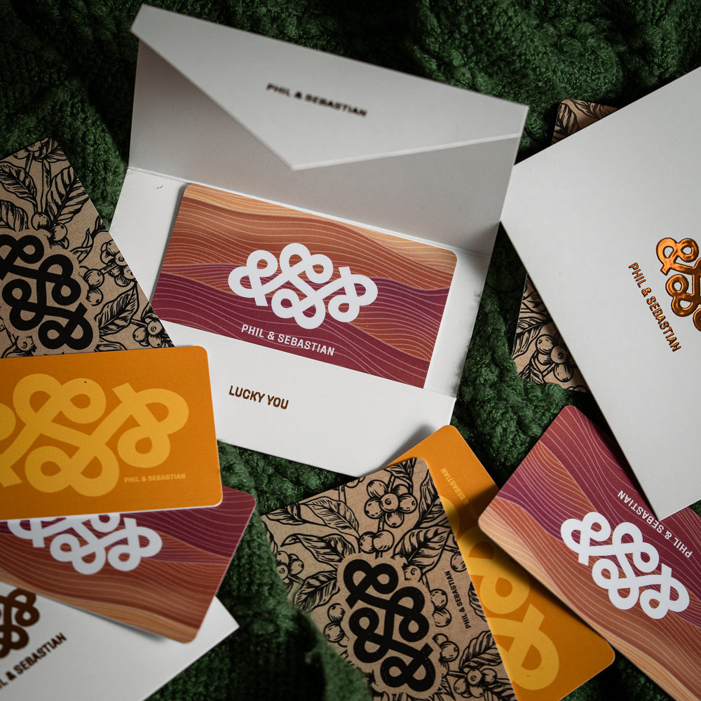 Note: Phil & Sebastian and Hoopla gift cards function identically, they just differ visually. Gift cards can only be used in our Calgary cafes, but shipping within Canada is free for any number of gift cards.